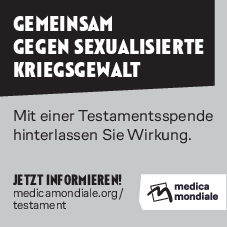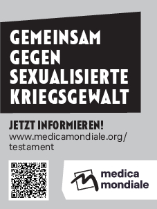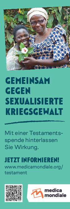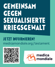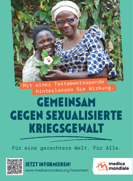 medica mondiale kämpft seit über 30 Jahren für eine Welt, in der Frauen und Mädchen frei von sexualisierter Gewalt leben können – im Krieg, auf der Flucht und in Nachkriegsgesellschaften.