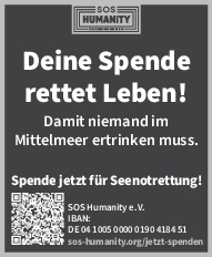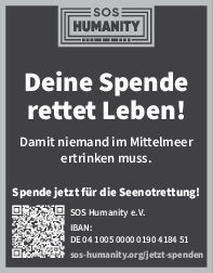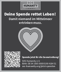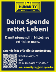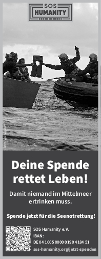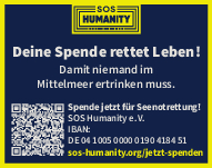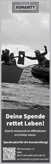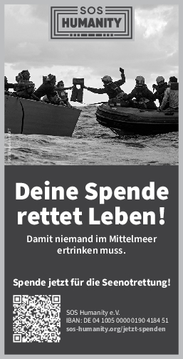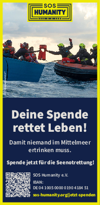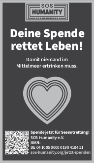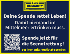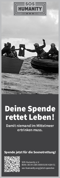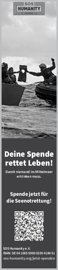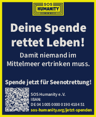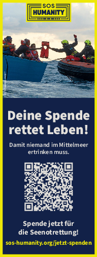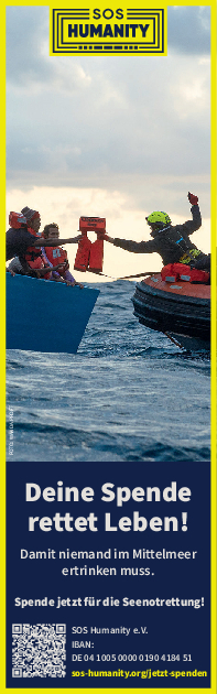 Mit dem Rettungsschiff Humanity 1 rettet SOS Humanity flüchtende Menschen aus Seenot im zentralen Mittelmeer.