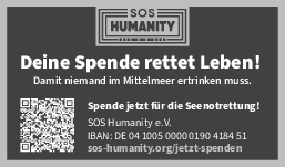 Als zivile Seenotrettungsorganisation setzt sich SOS Humanity für eine Welt ein, in der die Menschenrechte aller gewahrt werden. SOS Humanity steht für Menschlichkeit auf See und an Land. Der Verein engagiert sich dafür, dass kein Mensch mehr auf der Flucht ertrinken muss und jeder mit Würde behandelt wird.
