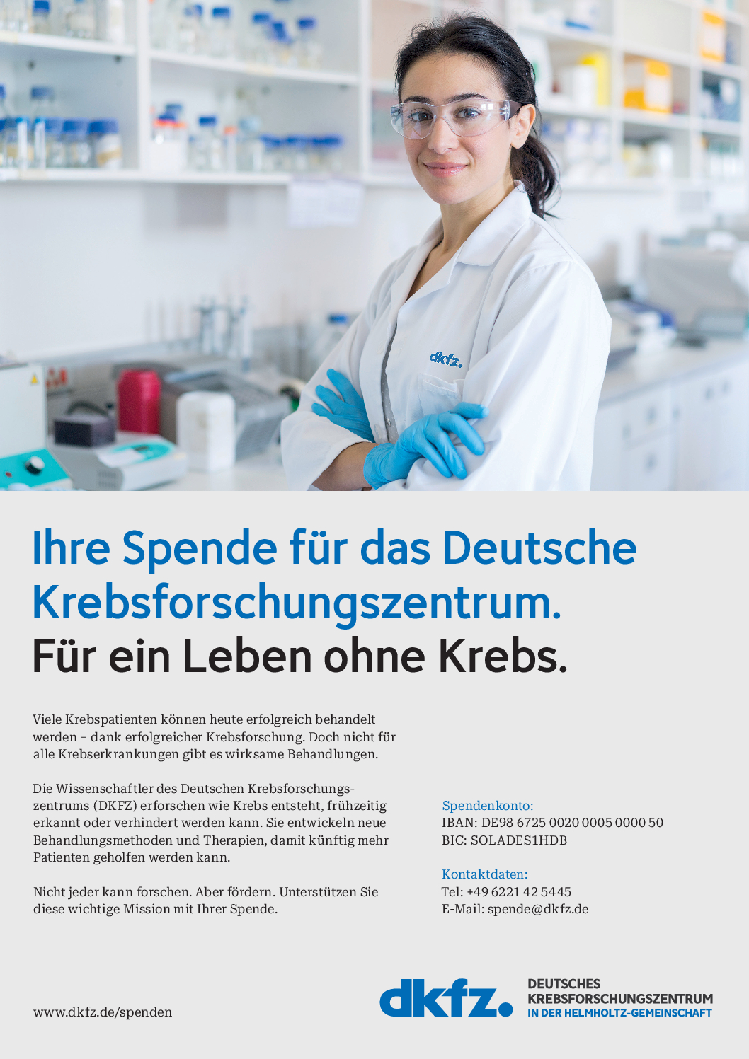 Krebs ist nicht gleich Krebs, und von Patient zu Patient kann die Erkrankung ganz unterschiedlich verlaufen. Nach intensiven Forschungsanstrengungen befindet sich die moderne Krebsmedizin auf dem Weg zu vollkommen neuartigen Diagnose- und Behandlungsansätzen. Wir im Deutschen Krebsforschungszentrum verfolgen mit unserer Arbeit eine klare Zielsetzung: Wir möchten erreichen, dass weniger Menschen an Krebs erkranken, dass Krebs geheilt oder so wirksam behandelt werden kann, dass Betroffene bei guter Lebensqualität mit der Krankheit leben und alt werden können.